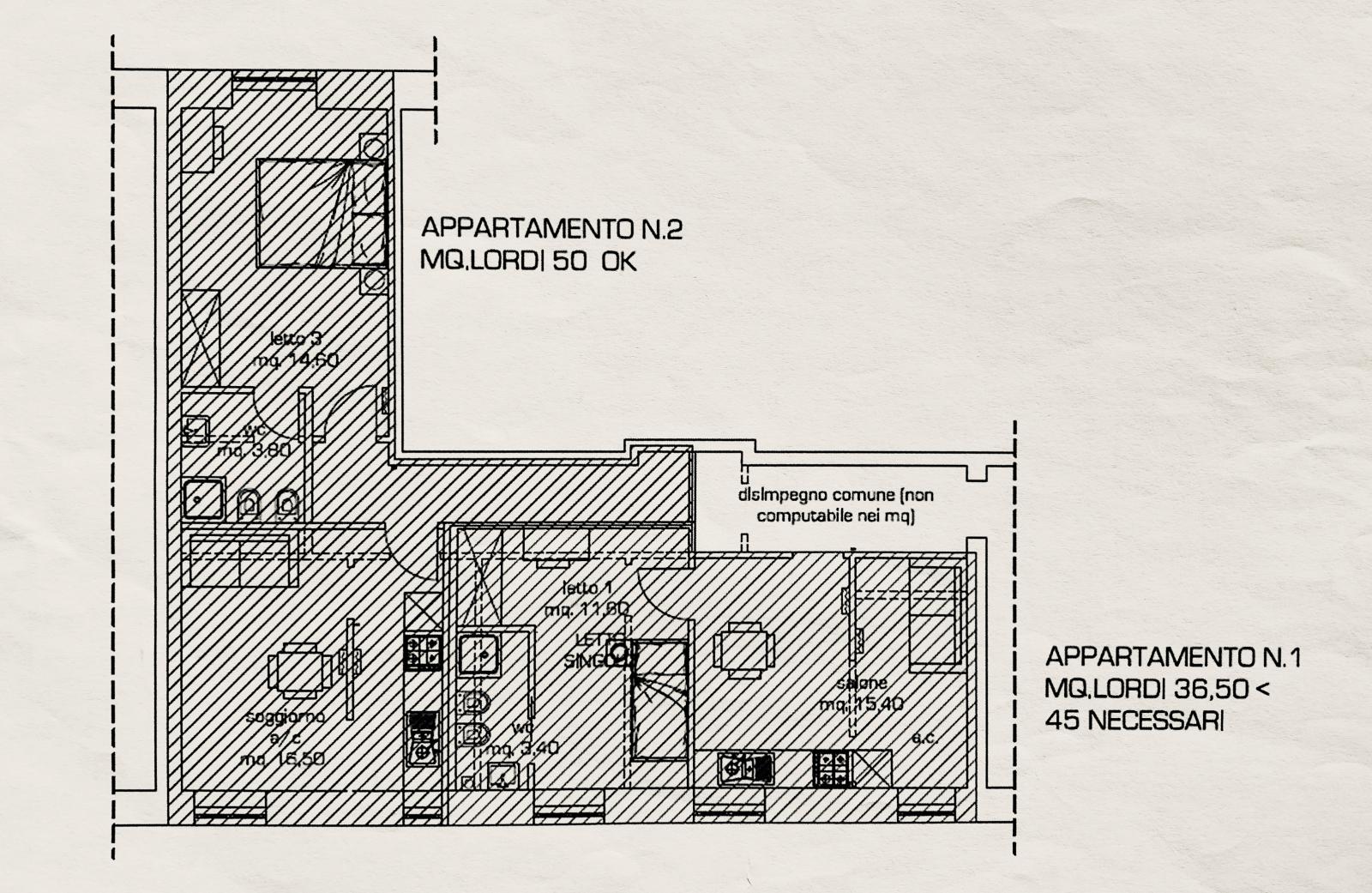 Dall’ingresso comune dell’appartamento si accede a due distinte unità immobiliari completamente indipendenti con porta blindata .