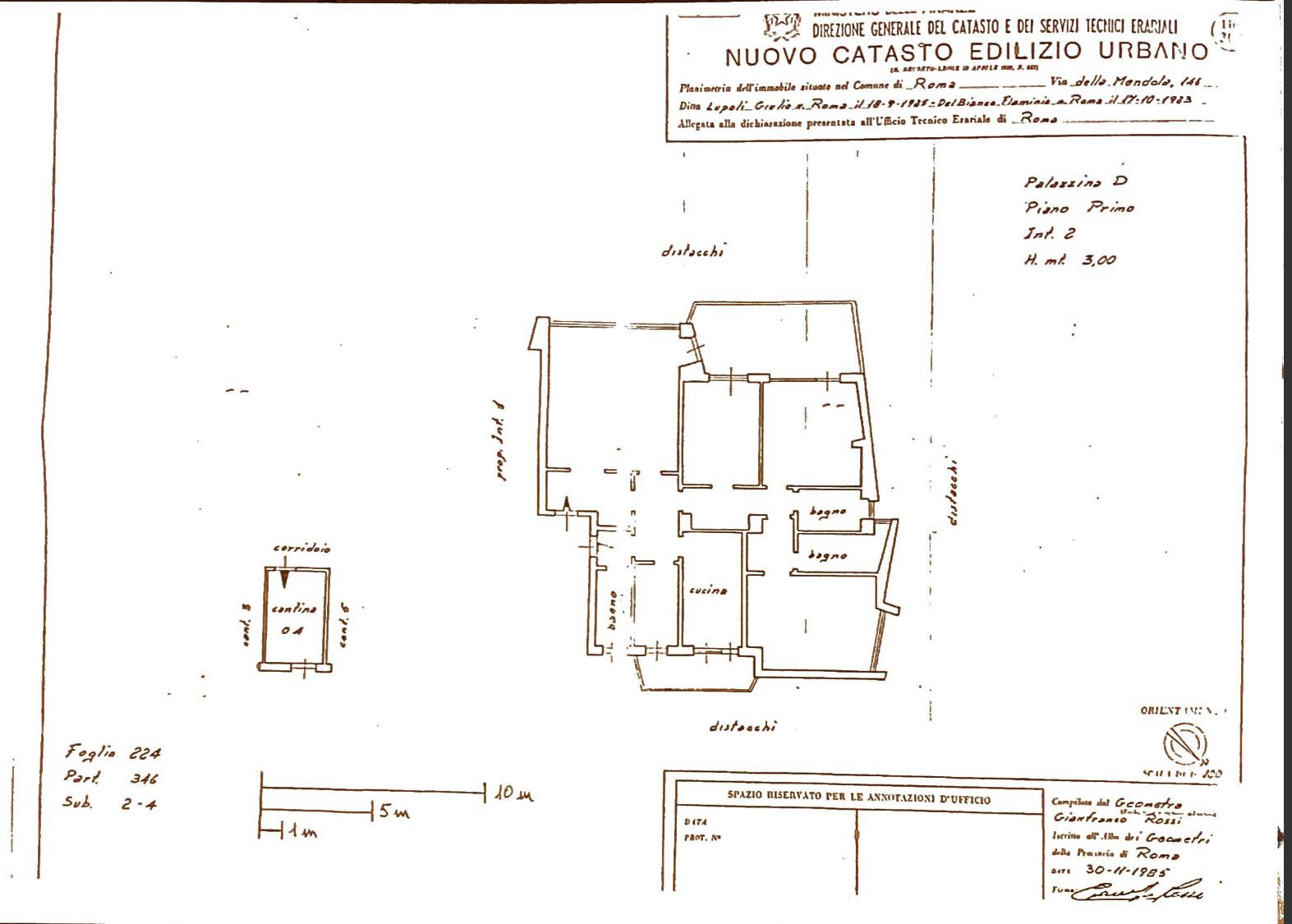 metratura interna è di mq 200, con un terrazzo vivibile di mq 18 circa e un balcone. Composizione: Doppio ingresso, salone doppio, 3 camere padronali, 2 bagni padronali, camera e bagno di servizio, cucina abitabile, ottima esposizione esterna su 3 diversi fronti. L' immobile è dotato di armadi a muro e librerie a misura di ottima fattura, riscaldamento centralizzato con contabilizzatori, una ampia cantina con finestra sul giardino condominiale di circa 9 mq e 2 posti auto di proprietà nella rimessa condominiale.